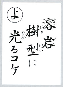 【解説】 浅間山溶岩樹形は、国指定特別天然記念物になっている。溶岩流が森林地を流れる時に、立木や倒木をまわりから包んでそのまま固まるため木質を燃えつくし、溶岩も冷却凝結するために生じた樹幹の型を溶岩樹形といっている。この溶岩樹形内にヒカリゴケが見られる。