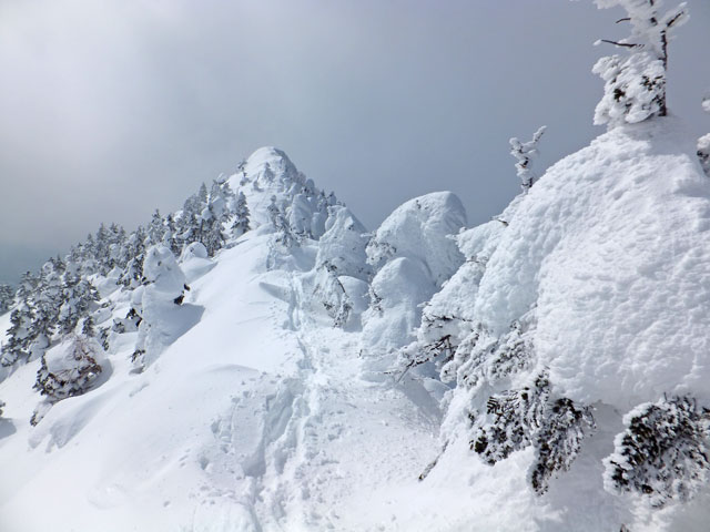 急な斜面をジグザグに登りきると、大きく長い雪庇が発達した稜線に出ます。山頂から北アルプスの絶景を観賞した後は、眼下の崖を覗きこんでみてください。ここはかつての火 […]