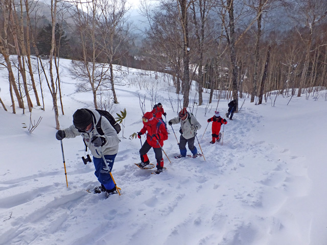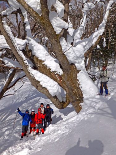 東京シニア自然大学御一行様の「万座温泉スノーシュー三昧3日間ツアー」。