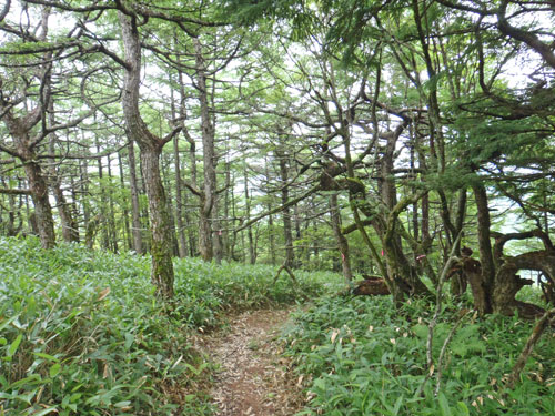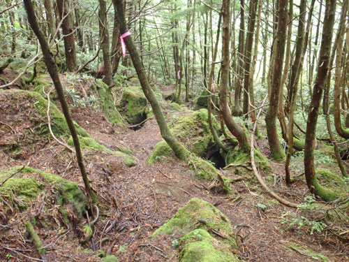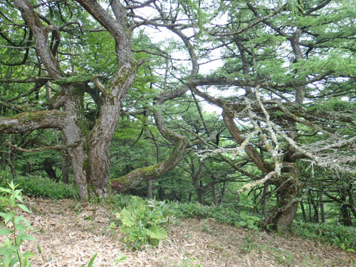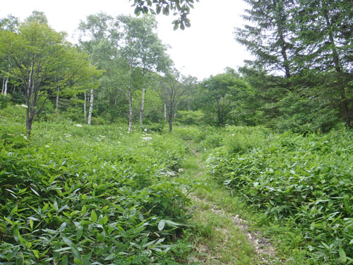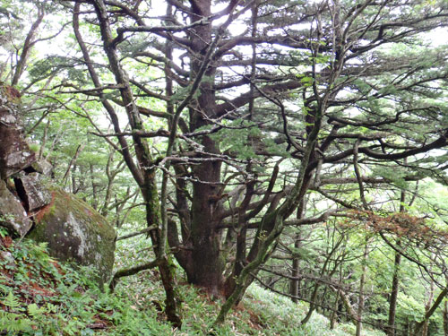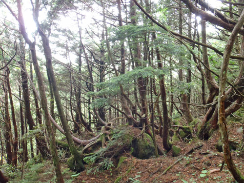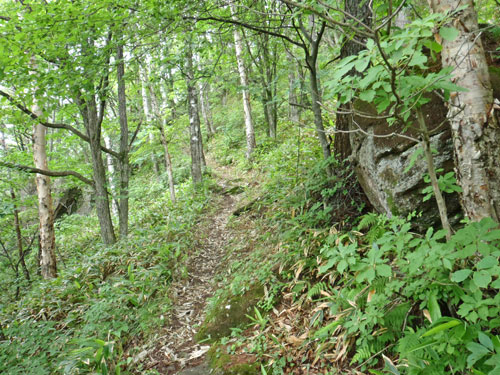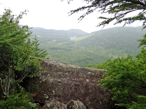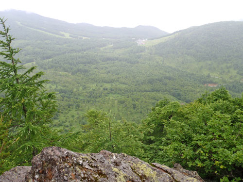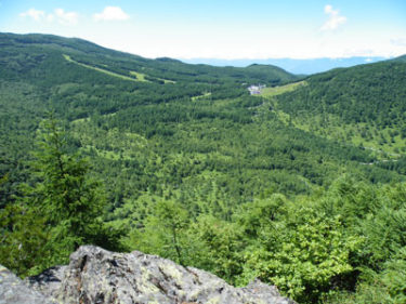浅間烏帽子火山群の溶岩ドームの一つ、桟敷山。この山をどうしたら登山需要を高めることができるかを考えていました。新たな原生林を開拓することができたら、岩上からの眺望ともののけの森を味わえるコースが誕生することでしょう。