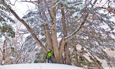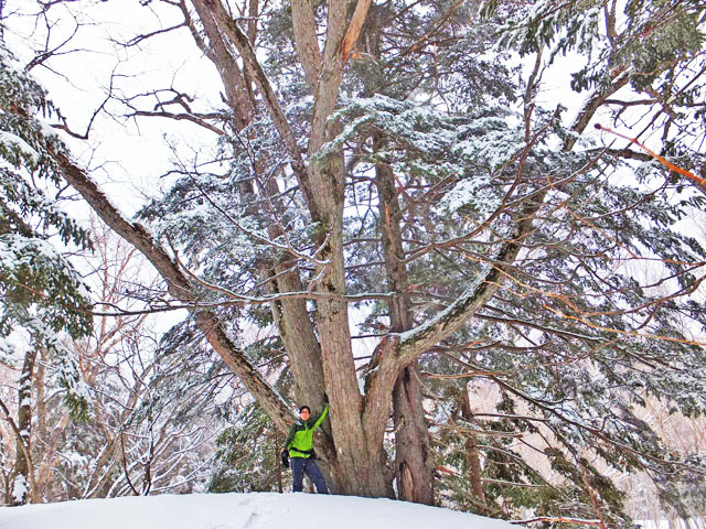 万座温泉にある熊池湖沼群にあるミズナラ巨木の一つ。幹回りは5m以上を計測しましたが、一般的な計測ルールである胸高直径より下なので、横綱の座はナラ太郎に明け渡しています。