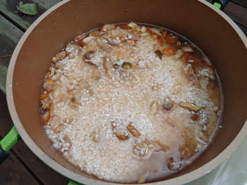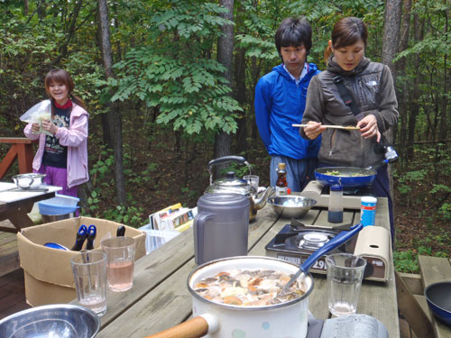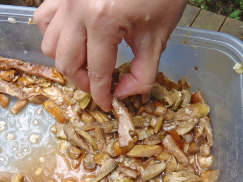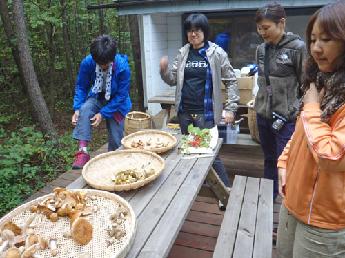 本来、リビングフード(Living Food)の調理法は 48 ℃ 以上の熱を加えずに、酵素が生きたままの食材をいただく…というものですが、野生きのこの場合はどうしても虫が入ることと、生食は中毒を起こすものが多いので、火は入れさせていただきました。但し、肉、魚、化学調味料は使わない、野菜も無農薬のものを使った、ベジタリアン対応の野生きのこ料理を作ることになりました。