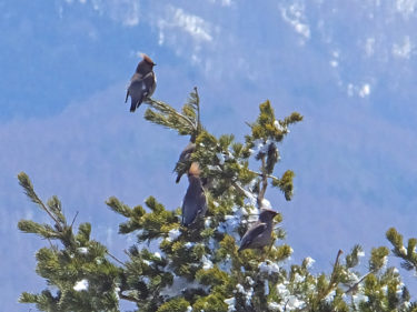 ホシガラスの群れかな?と思ったら、一回り小さい、キレンジャクでした。