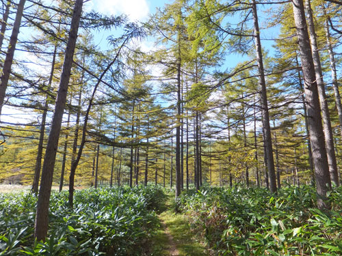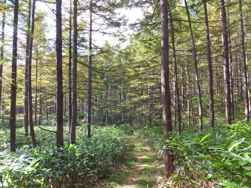 旧六合村のJEF奥草津休暇村敷地内にあるチャツボミゴケ群落は、本州唯一とも国内最大とも言われています。ここから草津にトレッキングして帰ってくるコースを検討しました。途中には平兵衛池、大池、水池、大平湿原などの名所があります。草津から渋峠への登山道(かつての旧道「草津道」、あるいは「渋湯道」)との分岐点(横笹)でUターンし、周回してくるコースです。