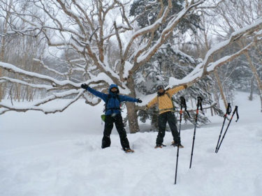 今日は茨城県からお越しのS様グループを万座温泉のカラマツ天然母樹林へスノーシューガイドさせていただきました。