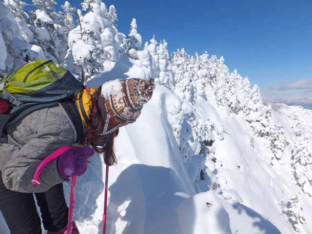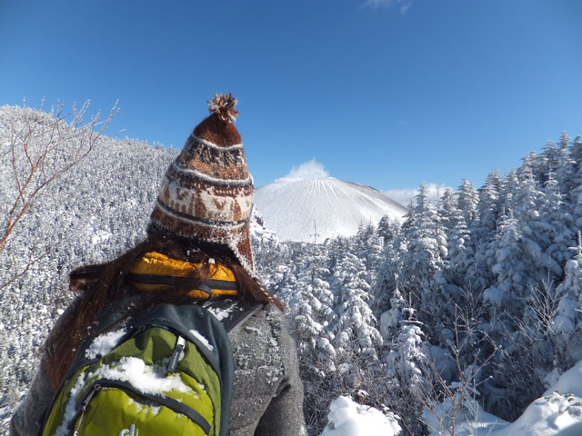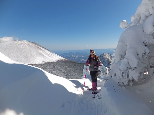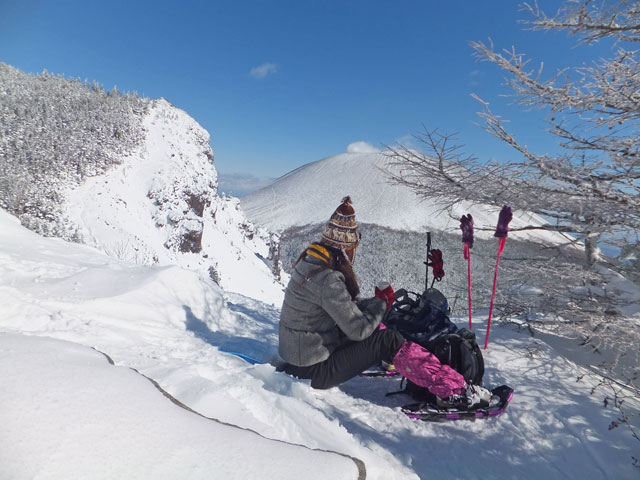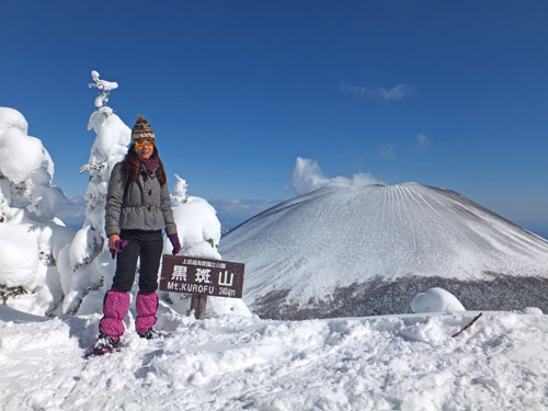 黒斑山山頂で、満足されたご様子のS様。以前、黒斑山登山に来たはずだったのに、なぜかたどり着けなかった思い出があり、今回のリベンジ登山を決意されたそうです。