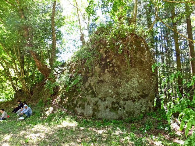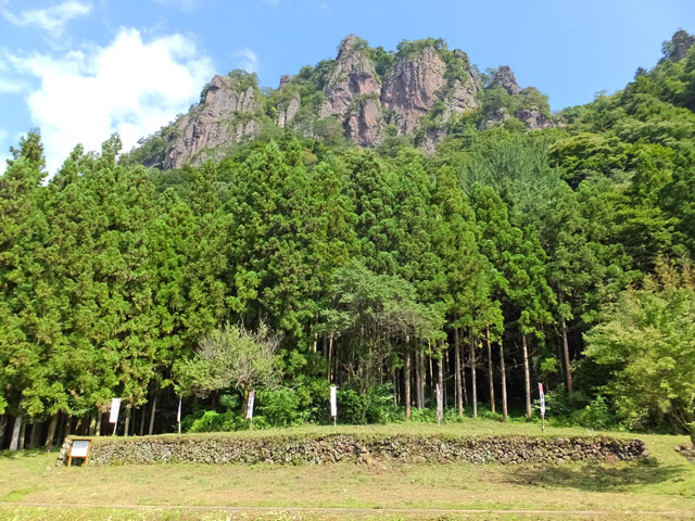 天正 10(1582)年3月、甲斐の武田勝頼は織田・徳川の連合軍に攻められていました。軍議の席上、真田昌幸は岩櫃城に勝頼を迎え入れ、武田の再挙を図ることを提案して許されました。昌幸は急ぎ帰国し、岩櫃山南面のこの地に勝頼を迎えるための館城(古谷御殿・現在は石垣が残るのみ)を3日間で造ったと言われています。