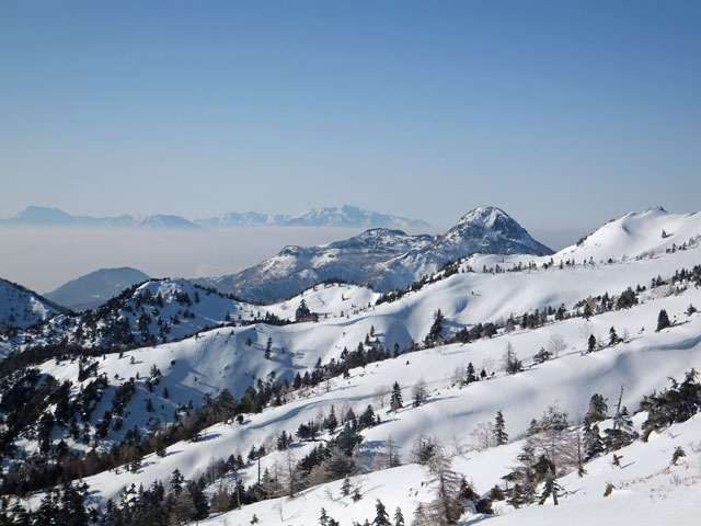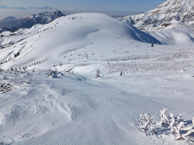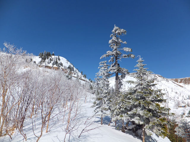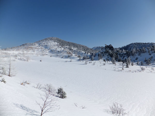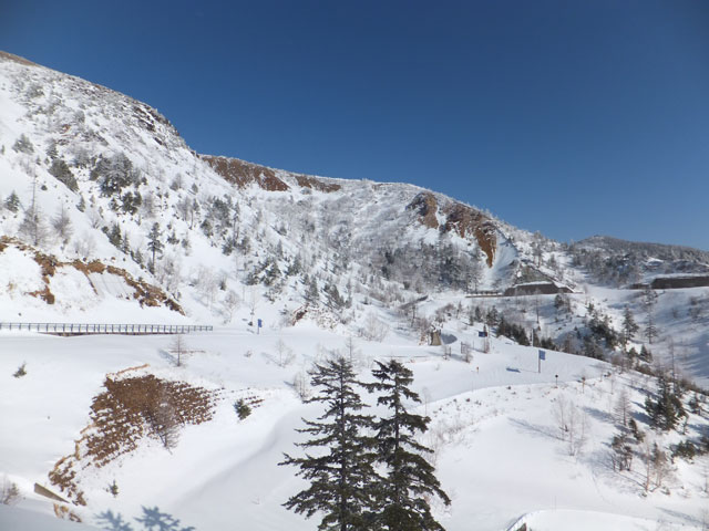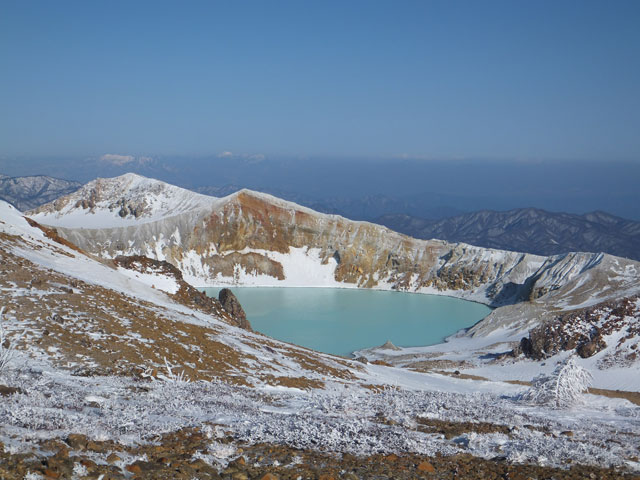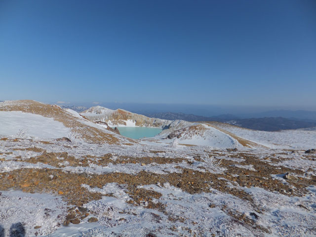 万座温泉から白根山湯釜&地蔵岳に進むコースの中でも、最もアクティブなコース取りをした場合の写真です。もっと安易なコースで行くこともできます。また、上級者でない限りは、滑落の恐れもあるので、地蔵岳からは周回ではなく、往復コースを取るのが望ましいでしょう。