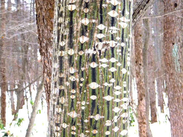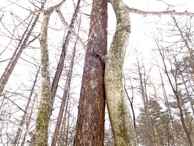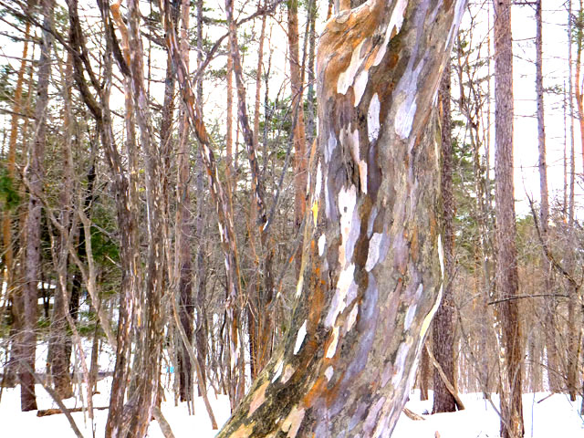 草津温泉のロイヤルコースは、冬の自然観察スノーシューとしては程よいコースです。樹木の冬芽、葉痕、皮目、樹形、或いは合体木など、主に樹木についての観察となります。