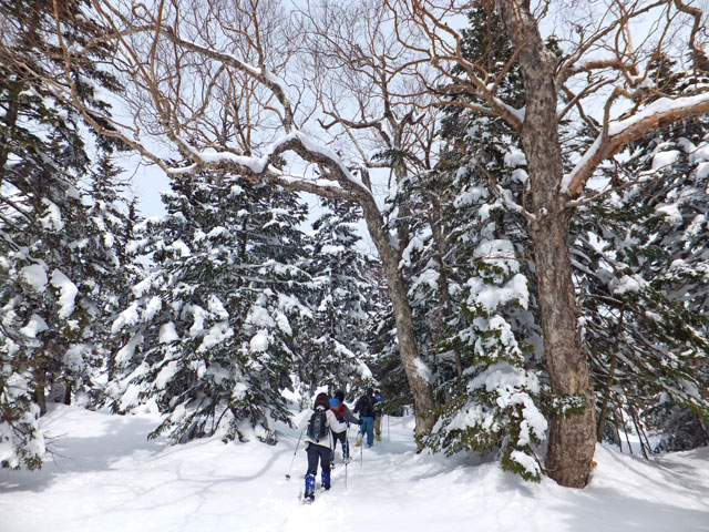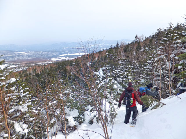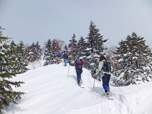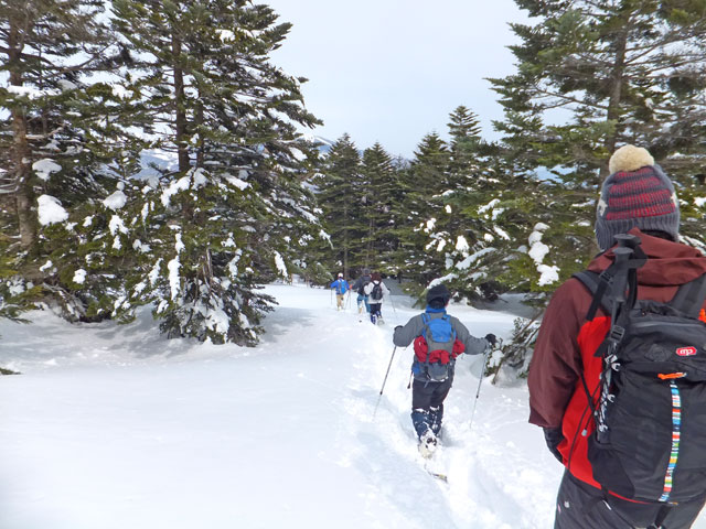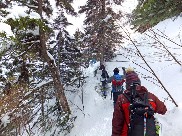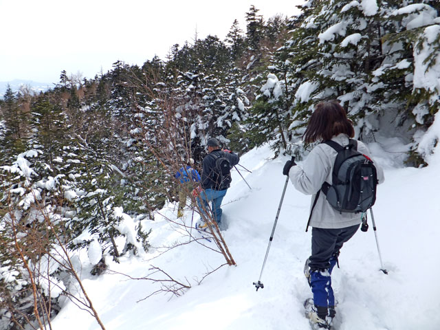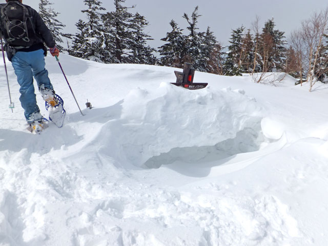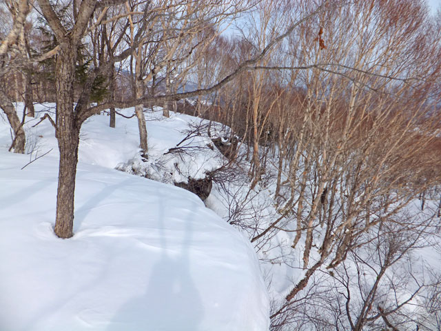 浦倉山山頂付近には誰かが大きな雪洞を作った跡がありました。雪洞づくり&雪中キャンプ、というのも面白いと思います。また、途中の崖を避けるコース取りをすると、その方がリスクが高いと考えています。崖に向かって進み、崖で右方向に舵取りをするのが安全なコース取りだと思います。