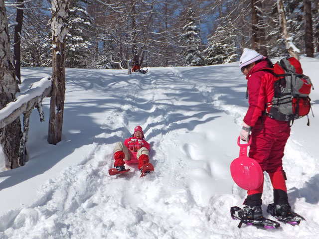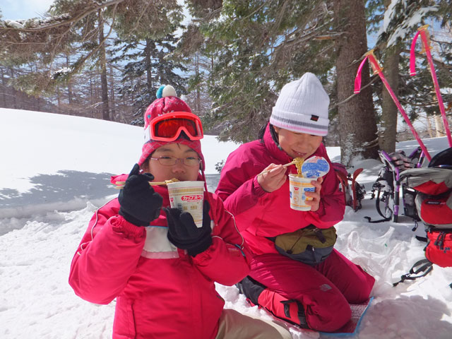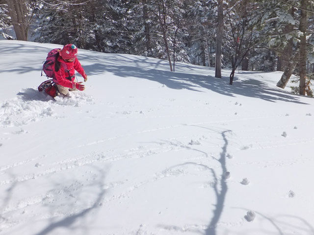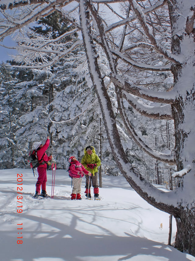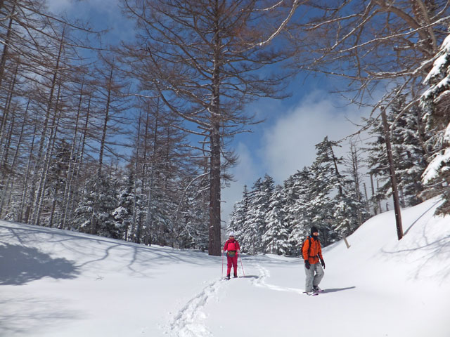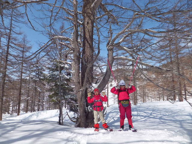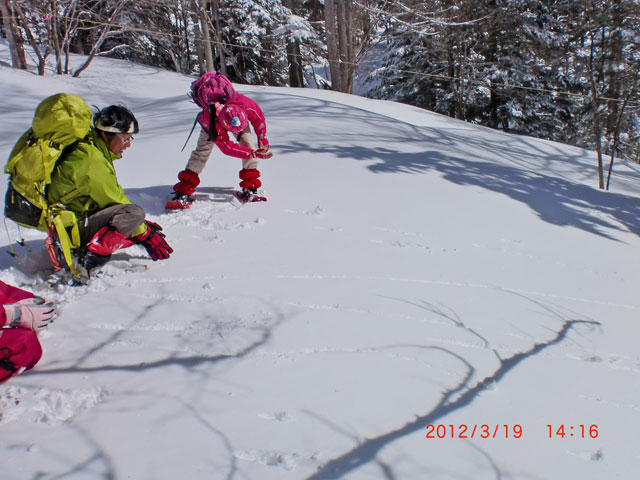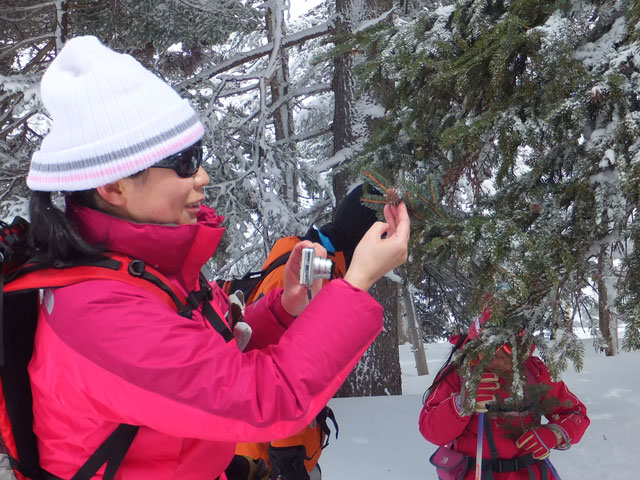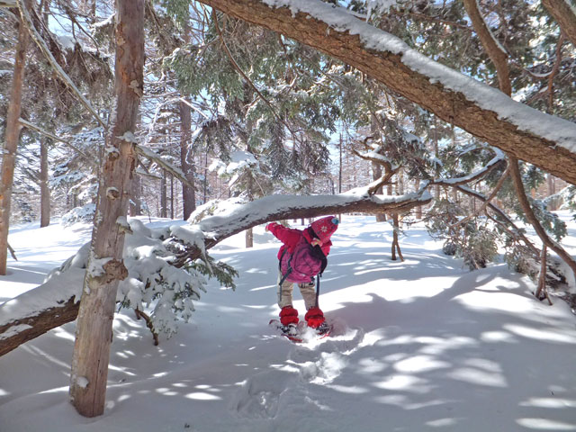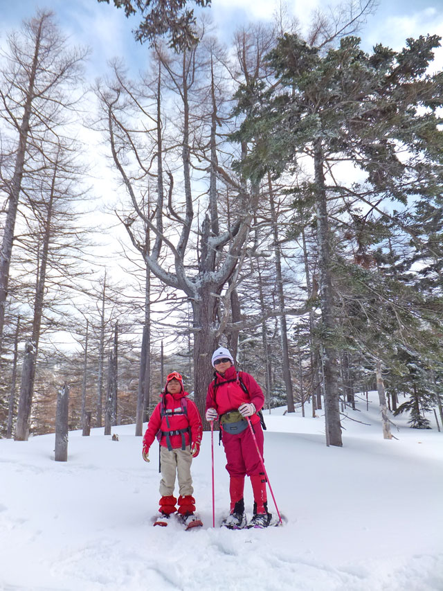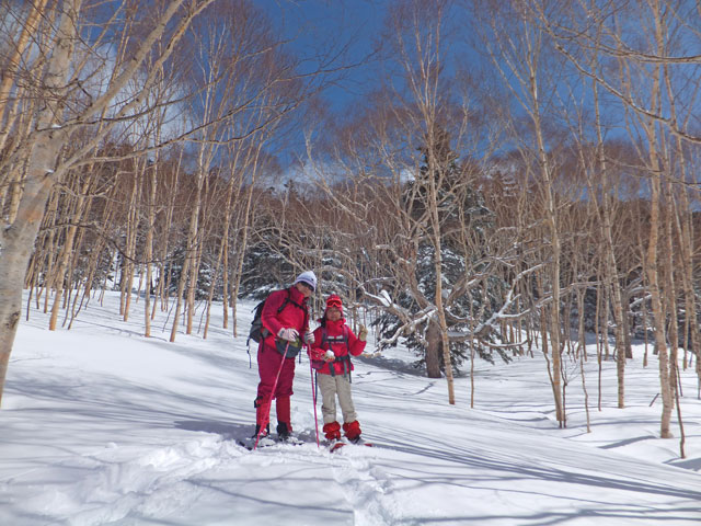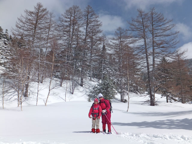 今日は、太田市のS様親子をご案内させていただきました。万座プリンスホテル様にお迎えに上がった時は雪が舞っていましたが、スノーシューを始める頃には天候も回復。3月にしては寒い日でしたが、良いスノーシュー日和でした。