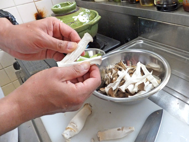 今年は放射能の関係で、野生きのこは採取と種類の判定だけして、料理では市販のきのこのみ材料に使う可能性があります。