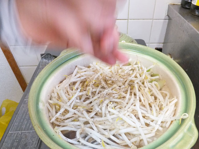 できました! 塩麹deきのこと豚しゃぶの黒胡椒鍋 です。
