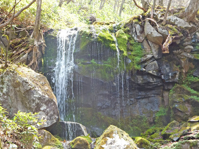 湯の丸山エリアをご案内した後、玉だれの滝へ。