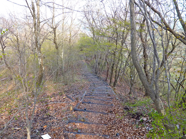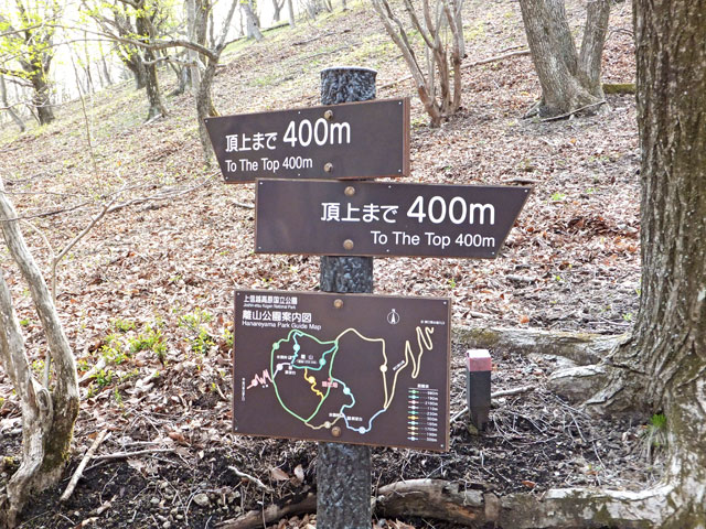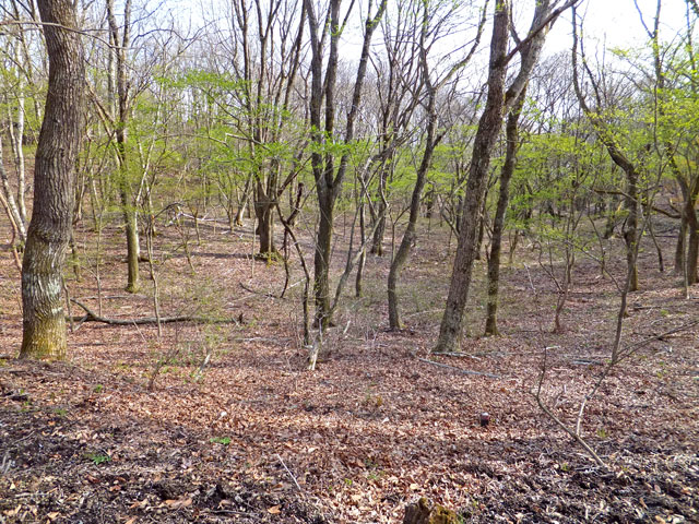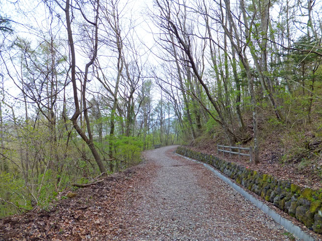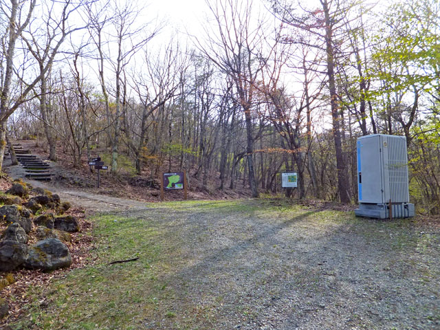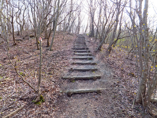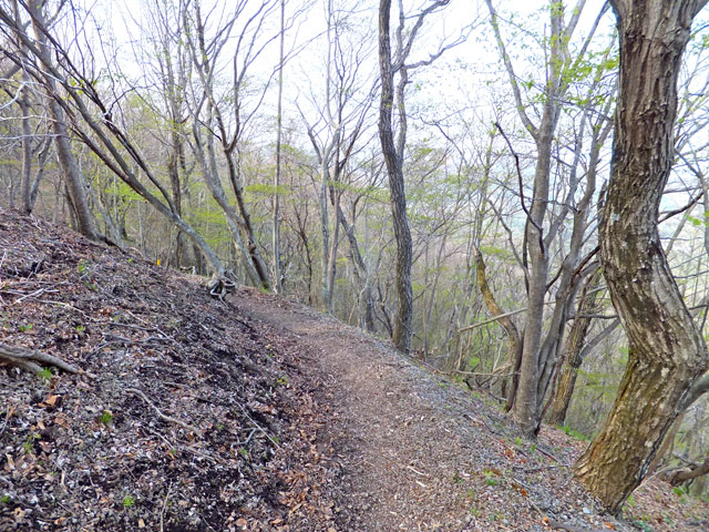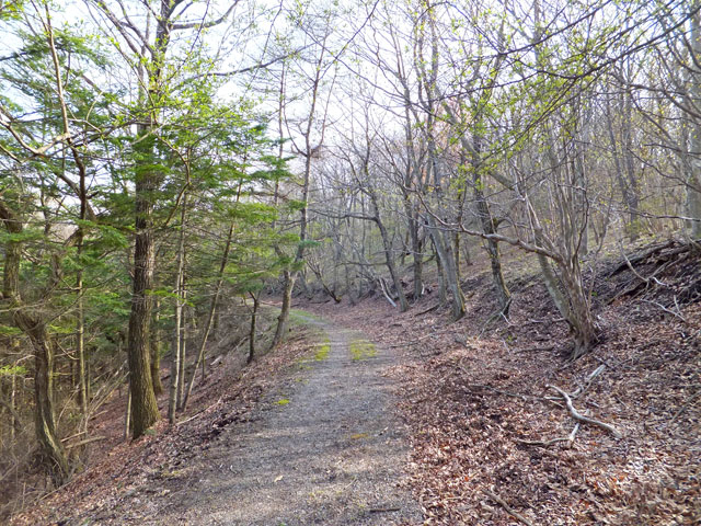離山東口登山道は、山頂近くまでずっと砂利が敷き詰められているので、野趣に欠けます。しかし上部の平坦なエリアまで行くと、足元も自然歩道となり、自然林の雰囲気があります。