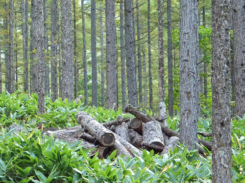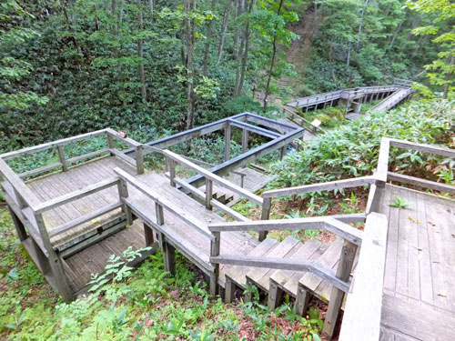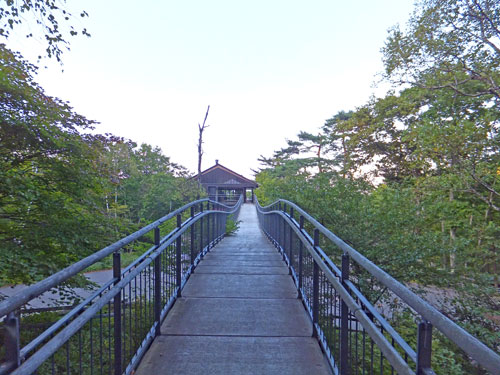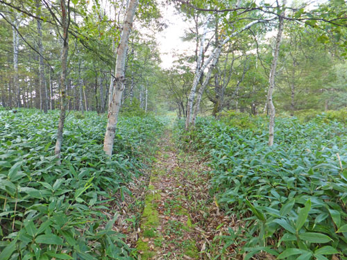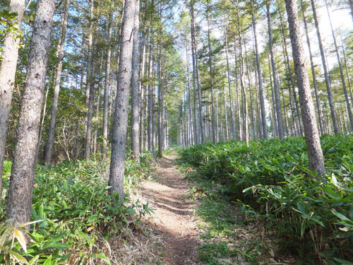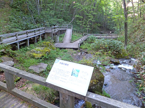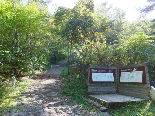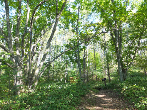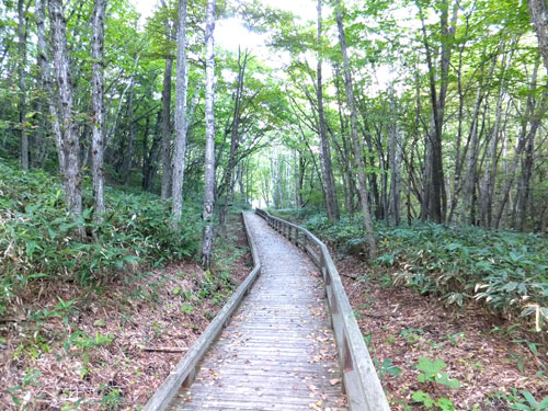 鹿沢園地の自然歩道は素晴らしく、このテラスの様な木道をいかに売るか、村上山に登りながら思案していました。