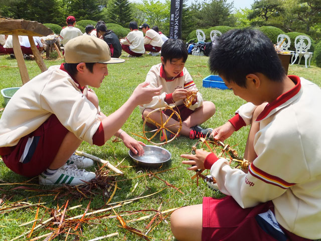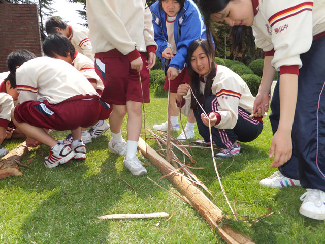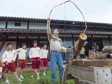 教育旅行の林間学校プログラム、最終日は、吾妻の芸術家スタン・アンダソンさんの 100%天然物で作るピュア・ネイチャークラフト「ドリームキャッチャー」 です。100人の生徒に見せるために、大きな見本を持ってきてくださいました。