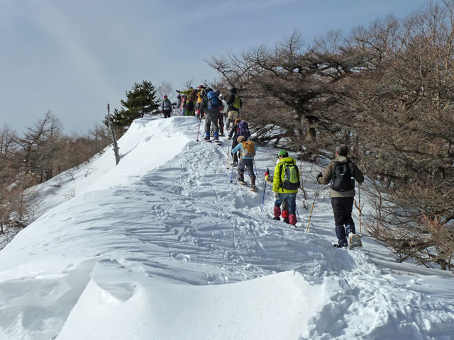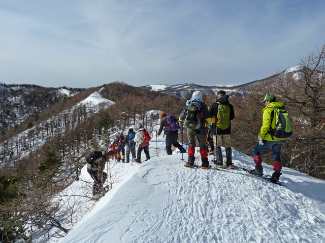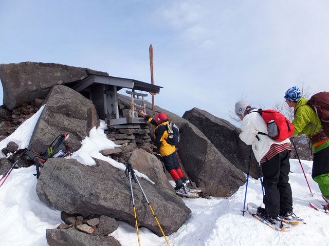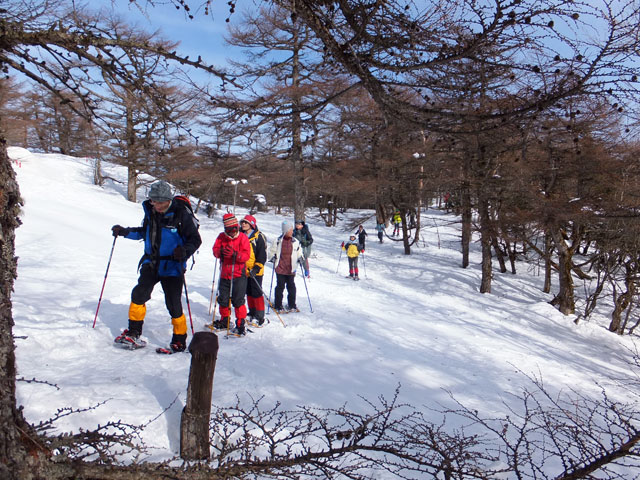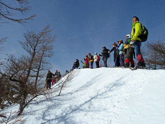 今日は愛知県からの団体様30名様を、高峰山スノーシューにご案内です。ご宿泊は万座温泉日進館(旧万座温泉ホテル)です。
