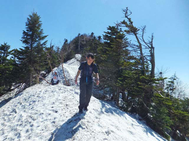 まだまだ残雪が多いこの季節、7月後半の林間学校の下見にと、御担当の先生がお見えになり、四阿山をご案内しました。