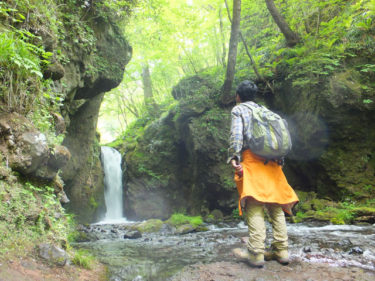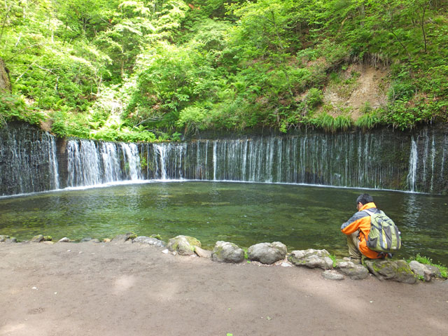 明日実施する、「森林セラピスト・森林セラピーガイドのための 実践セミナー」の下見です。「竜返しの滝」を眺めている山中さんが素敵でした。