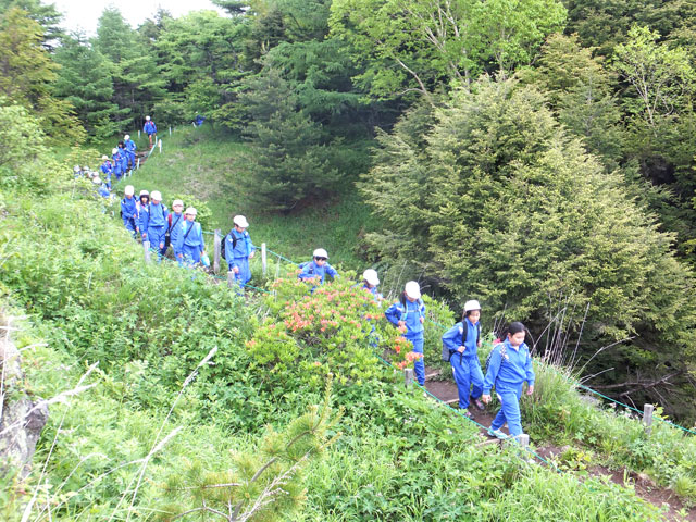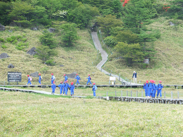 埼玉県熊谷市のY小学校5年生、約60名様を池の平にご案内しました。自然と火山の学習ハイキング、引率ガイドです。