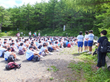 今日は埼玉県のF中学校 140 名さまの林間学校で池の平自然学習ガイドです。当協会ガイド5名でご案内させていただきました。