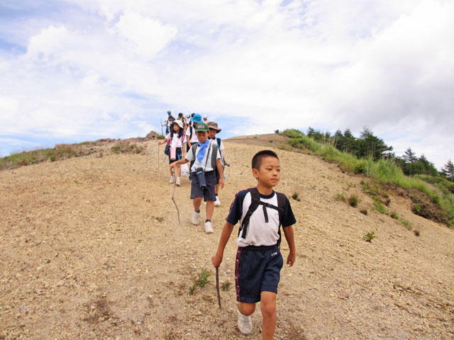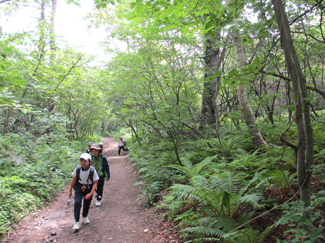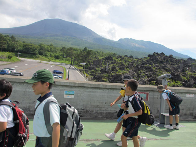 千葉県I市のS小学校5年生の皆さんを、昨日に引き続き浅間山域ジオ体験学習林間学校としての引率ガイドです。浅間山を中心とした山域の火山、動植物、歴史などを学びます。