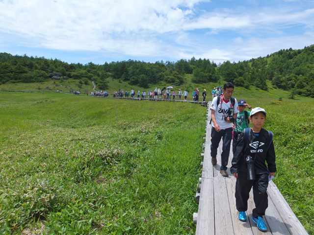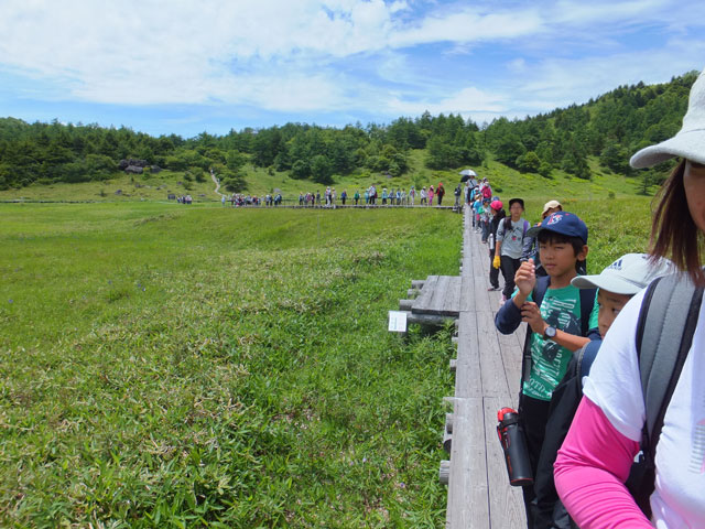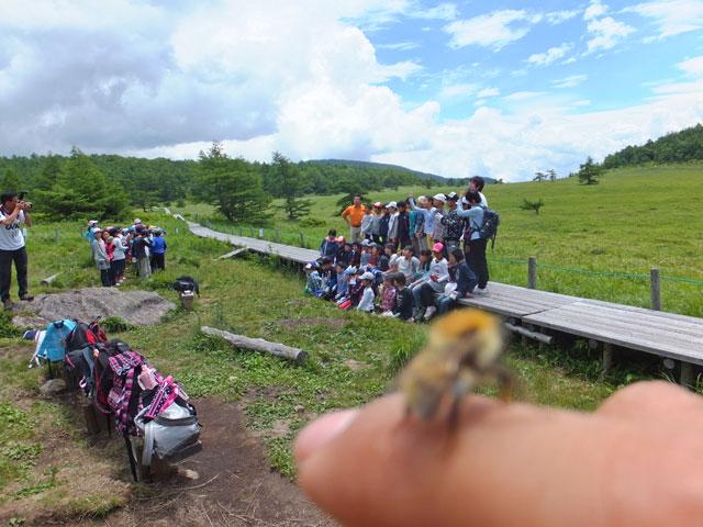 今日は東京都N区E小学校5年生68名様を、池の平で自然観察学習ハイキング引率ガイドです。今年で2年目のお客様です。