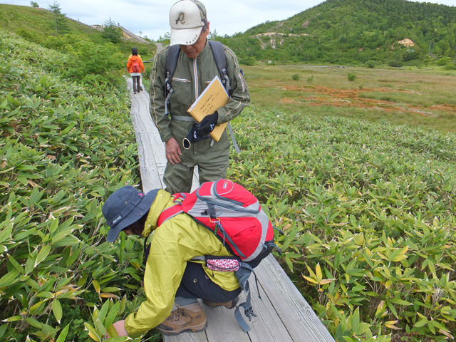 7月25日にご案内する女子中学校1年生林間学校の自然学習ガイドのためのスタッフ研修会です。ガイド12名での依頼でしたので、2日間(2回)に分けて実施しました。今日が2回目です。ミヤマモンキチョウやアサギマダラがたくさん飛んでいました。