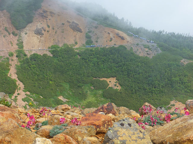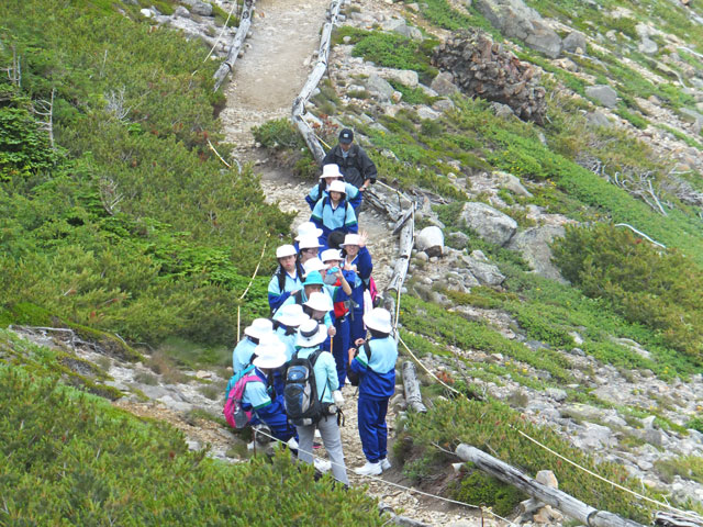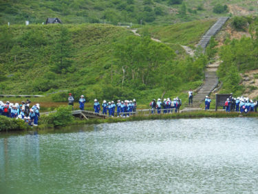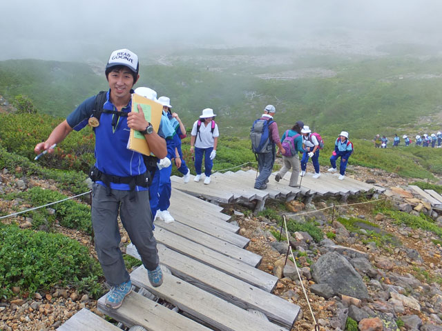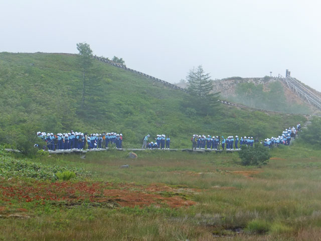 今日は千葉県のW女子中学校林間学校120名様の本白根山登山ガイドです。120名様に対して12名のガイドがつくという、林間学校にしては大変丁寧に自然観察をしたいとお考えでいらっしゃいます。これはやりがいがあります。おまかせください!