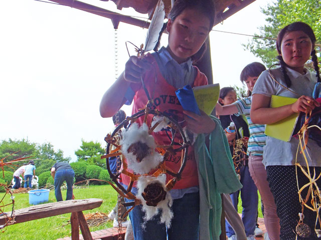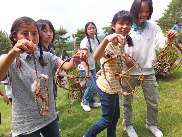 千葉県W女子中学校林間学校3日目。今日のテーマは、「自然の中で芸術家になろう!」 だそうです。午前中はドリームキャッチャーづくり、午後には愛妻の丘に行ってスケッチをする、だなんて、いいじゃないですか。