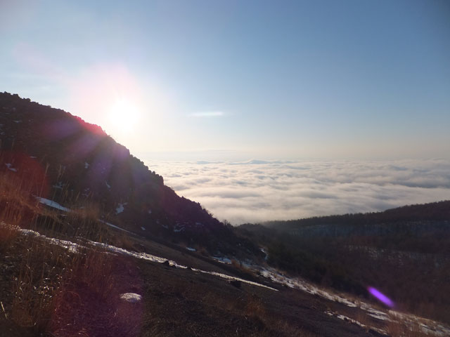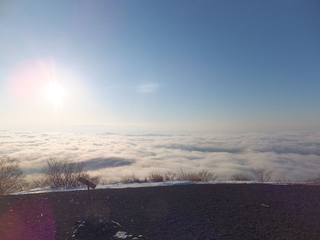 日の出に合わせて小浅間山を登るのもお薦めです。冬ならサンライズスノーシュー。小浅間山の標高でも、このような雲海が見られることもあります。