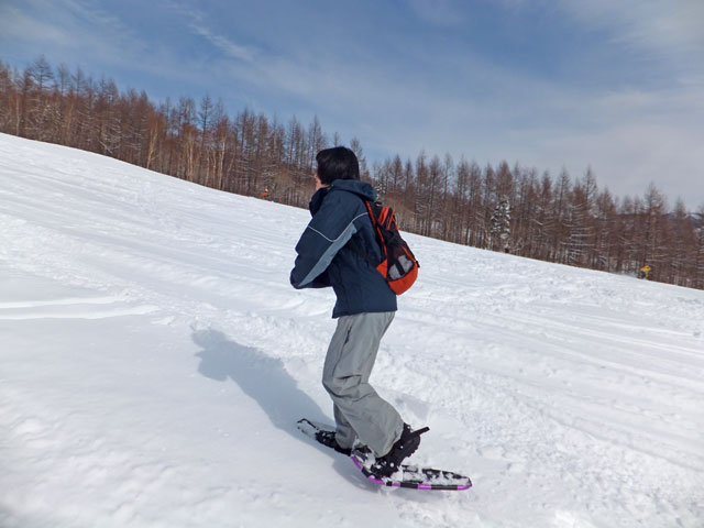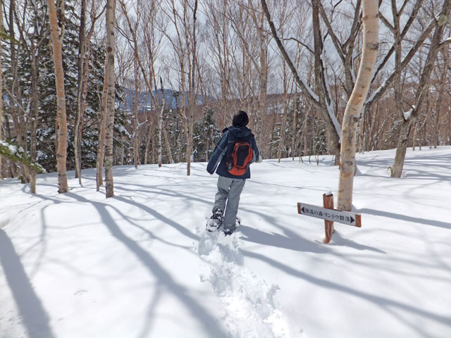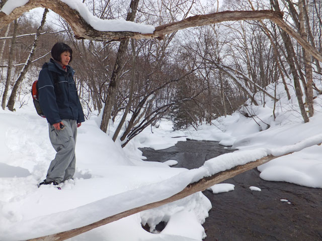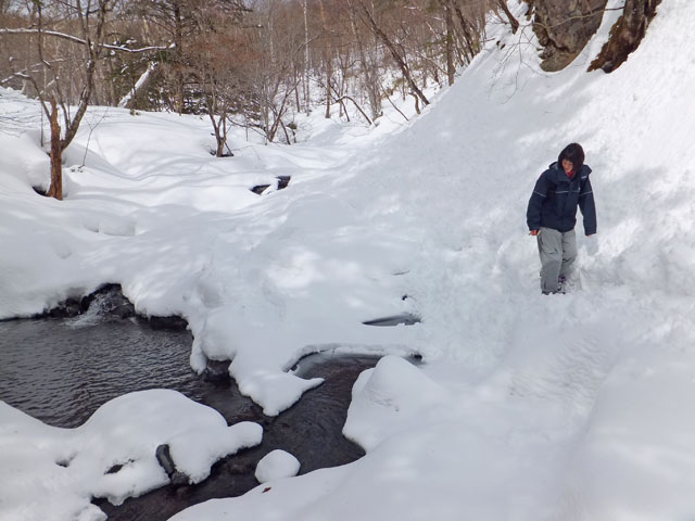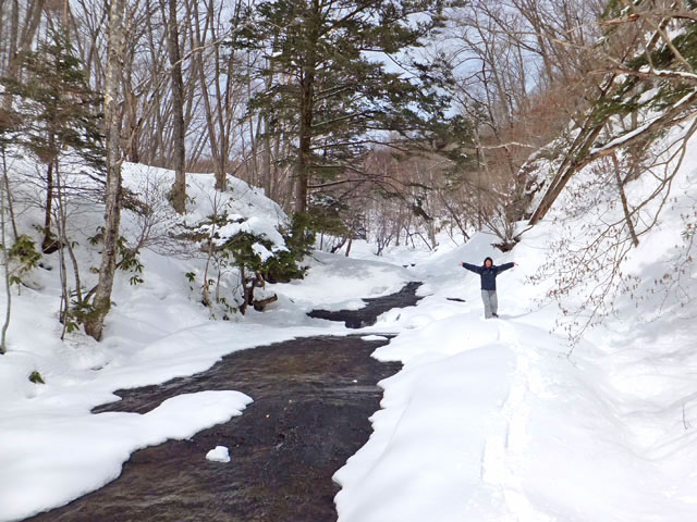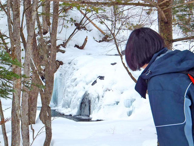 嬬恋村の天然記念物「石樋」にある氷結した滝と、その上部にある清流宇田沢の源流となる水源の森を訪問するコースです。夏の間は東海大学嬬恋高原研修センター様の敷地内から上って行くのですが、冬、バラギ高原嬬恋スキー場のリフト(現在はパルコール嬬恋様が運営)が動いている間は、リフトに乗って上から歩いて下りてくる楽々コースを取ることができます。