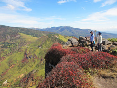 毛無峠〜破風岳〜かたらいの森〜牛池〜弁天池。紅葉最高の時です。絶景と合わせて大満足していただけました。