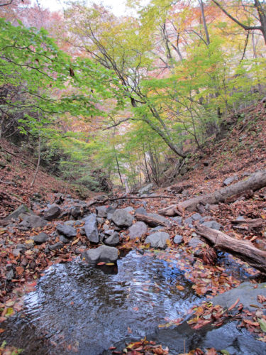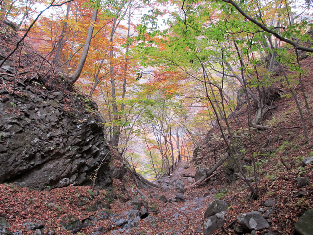 吾妻渓谷内、大曲沢を少し登るとある「大曲の滝」。本来立入禁止の場所ですが、美しい沢です。