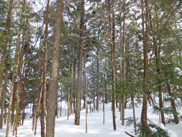 浦倉山山頂はあまり展望はよくありません。このコースの多くは下りなので、脚力は必要ではありませんが、コース自体は長いので体力は必要です。景色があまり変わらない状況で、途中大きな崖があります。ルートを間違えると遭難の可能性もあるので、ガイドは必要なコースです。