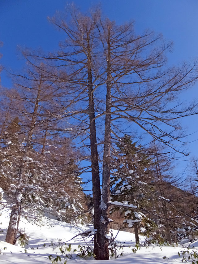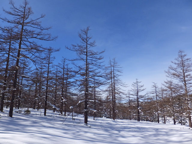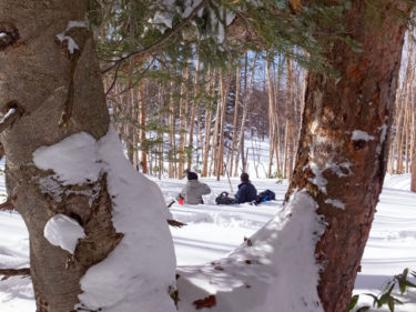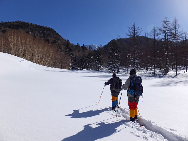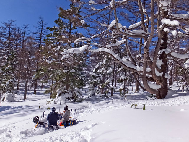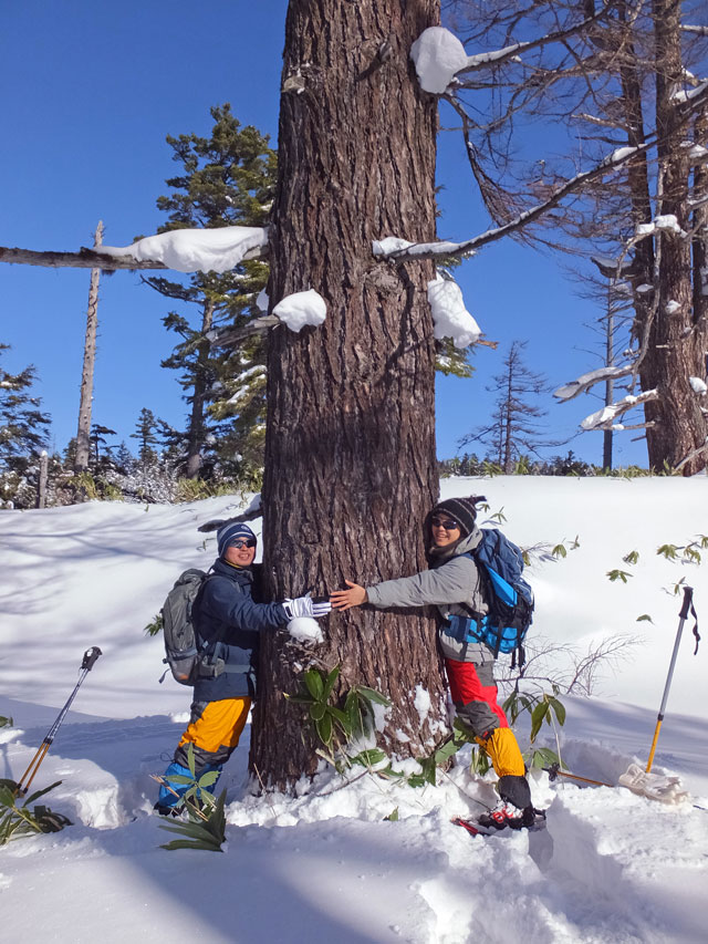 今日は香川県からお越しのD様ご夫妻を、万座カラマツ天然母樹林にスノーシューガイドです。ご宿泊は万座温泉日進館様です。