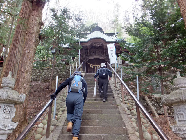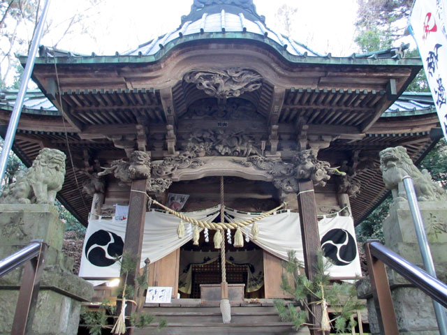 王城山神社の境内には、どういう訳か東吾妻町岩島矢倉にある、鳥頭宮の拝殿(別当?)があります。建て替えて新しくなっていますが、これは吾妻太郎藤原行盛(〜1349年)(岩櫃城主)と関係があります。藤原行盛氏は1321年、矢倉鳥頭神社の社殿を改修したりもしています。