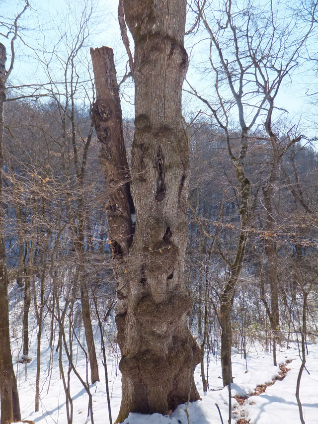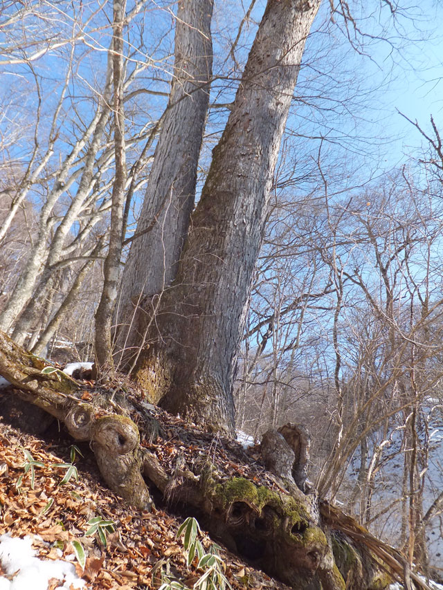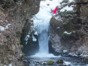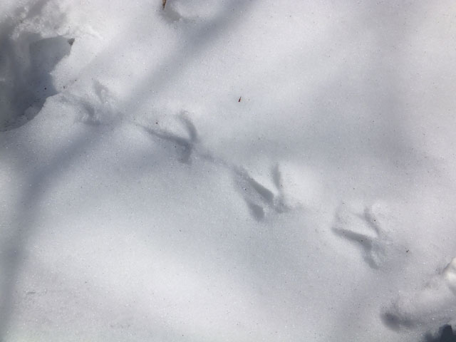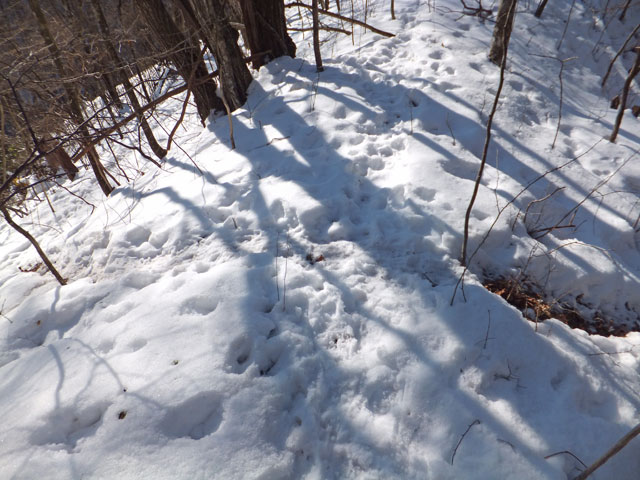 雪の少ない軽井沢町内で、スノーシューを楽しむとしたら、竜返しの滝付近は面白いかもしれません。野生動物の足跡がたくさんあります。