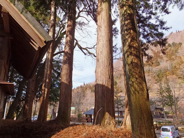大きなスギやケヤキの木は、このようないわれのある神社の境内木として、長い間大切に守られてきた … そうです。