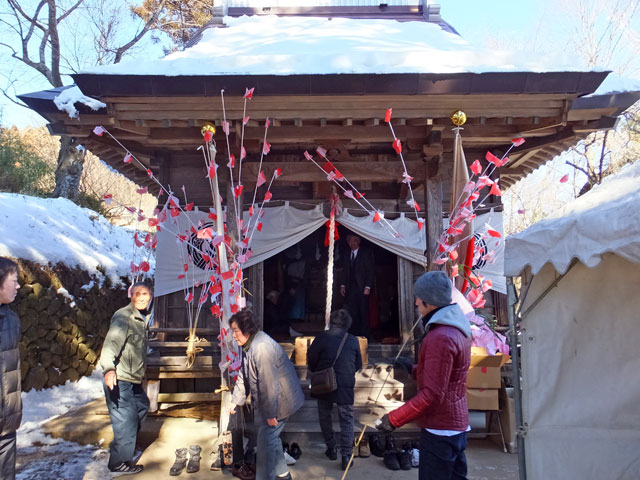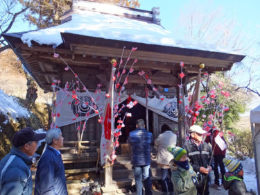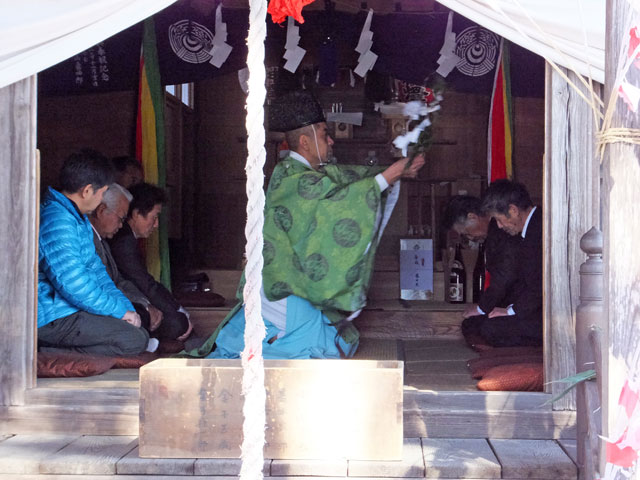 拝殿内で神事を務める神主さんは、大宮巖鼓神社の神主さん=高山さんでした。在下在住の方は大宮巖鼓神社の氏子であり、稲荷神社の氏子でもあり、二重の氏子になっています(他にもあるかもしれません)。が、誰もそれを疑問視してはいないようです。こういうのが、日本の「八百万の神」信仰なのでしょうね。