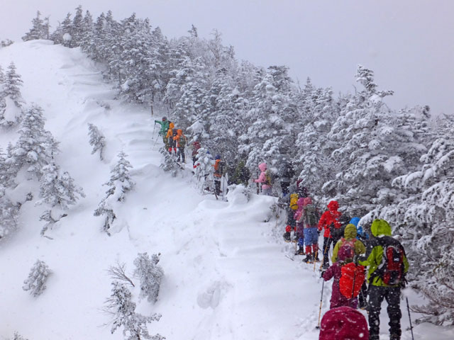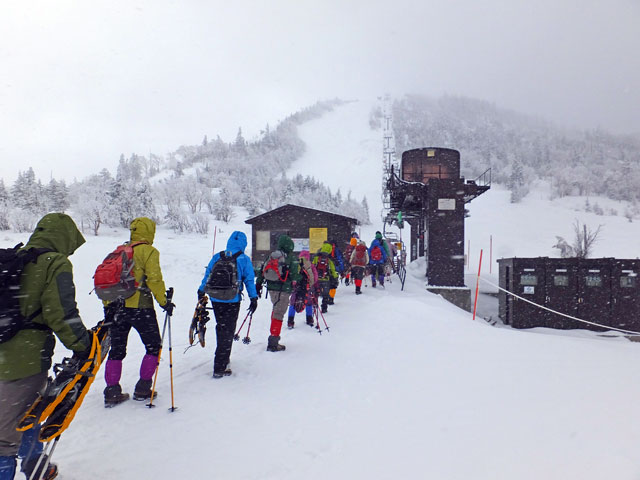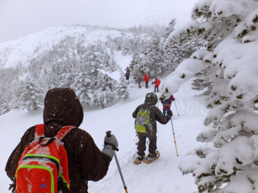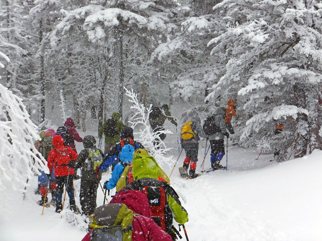 昨日に引き続き、名古屋からの40名の団体様を、スノーシューガイドです。今日はこの人数を本白根山へご案内しました。草津温泉ホテルヴィレッジご宿泊です。