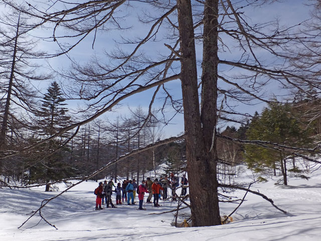 今日は神奈川県からの団体様、合計18名様を万座カラマツ天然母樹林にご案内してまいりました。