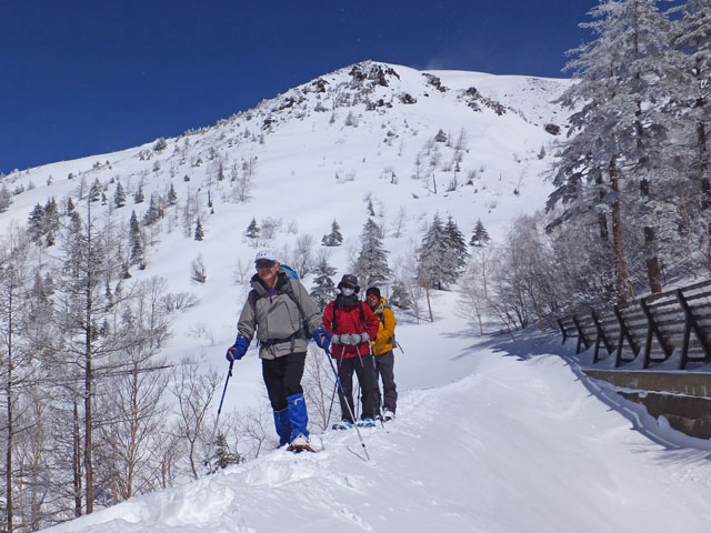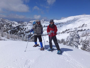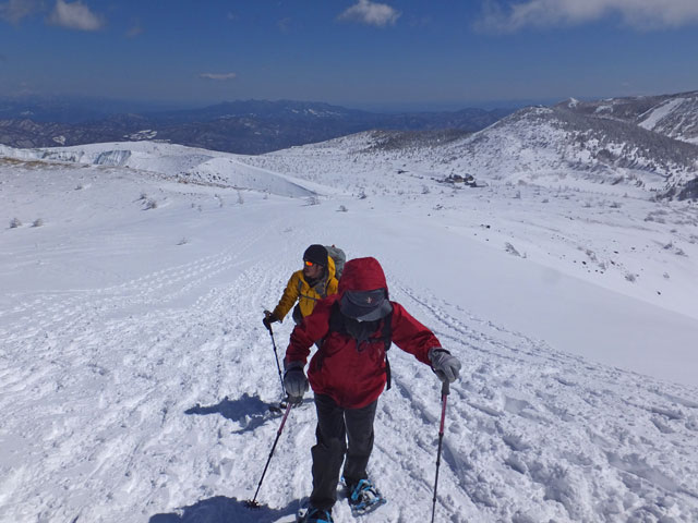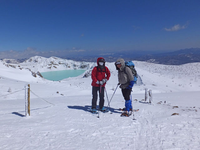 万座温泉から白根山湯釜と地蔵岳スノーシュー