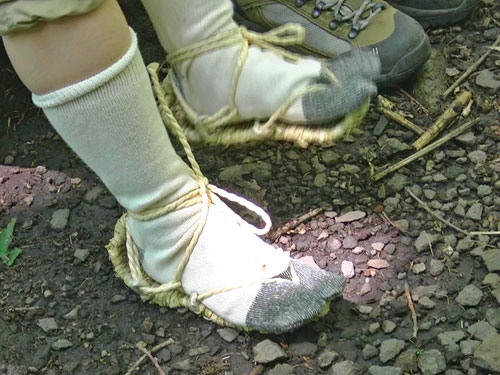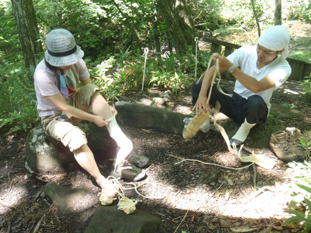 石樋沢歩きツアーは、草鞋+軍足の最強セットで挑みました。それにしても、水が冷たい!