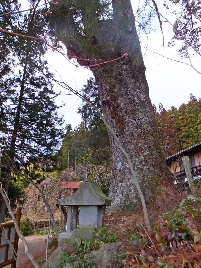 中之条町から県道 53 号線を7kmほどみなかみ町方面に進むと、「囀石」「日本一のモミ」などの看板があります。左折して 300 m ほど進んだところに、この巨木はあります。