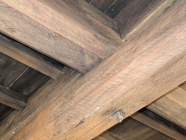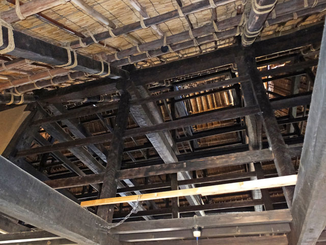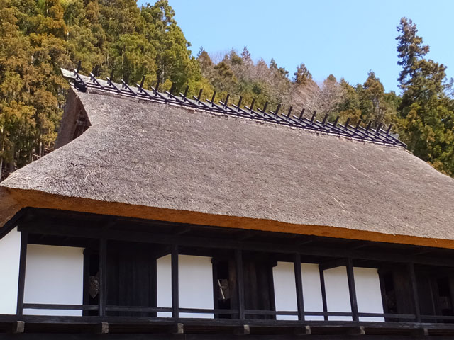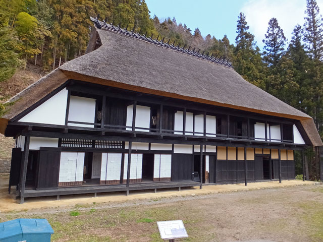現在の建物は寛政2年(1790)に建てられた茅葺入母屋造りの2階建てで、正面の屋根を高く切り上げ、2階の部屋に光を取り入れられるようにした「前兜造り」「平兜造り」風の屋根をしています。桁行13間(約24m)、梁間7間(約13m)の大型農家建築で、屋根の形状や平面構成から北毛地方の養蚕農家の典型とされています。