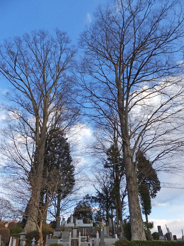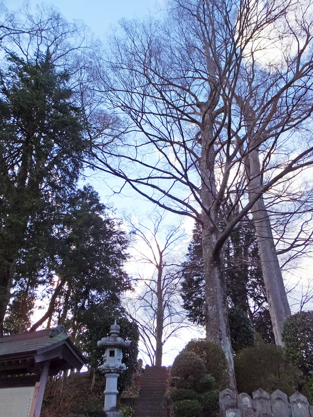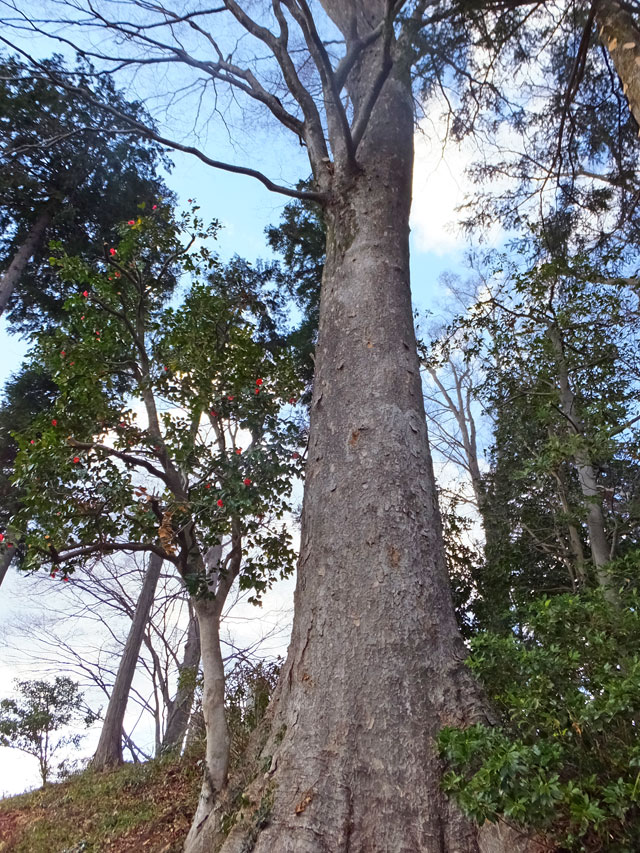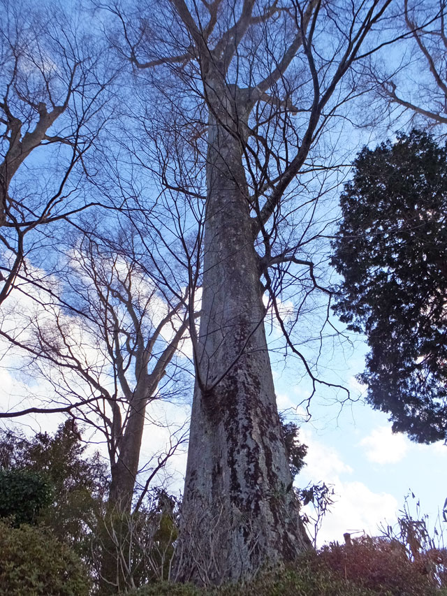 本道の左側に進むと、中之条町指定天然記念物「清見寺の境内木」の看板がありました。なるほど、やはり町でも有数の巨木群だったのですね。明治18(1885)年開校した旧吾妻第三小学校(現中之条町歴史と民俗の博物館「ミュゼ」)の建築の際にもこの森の木を使い、また昭和30(1955)年には日光輪王寺改修のとき、大きなケヤキを一本売却したとのこと。表を見ると、目通り周囲で4m以上のものが6本あるそうです。こりゃあ凄い。