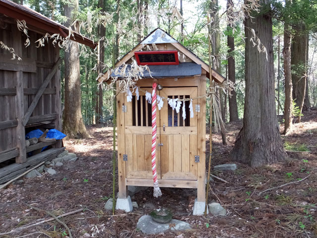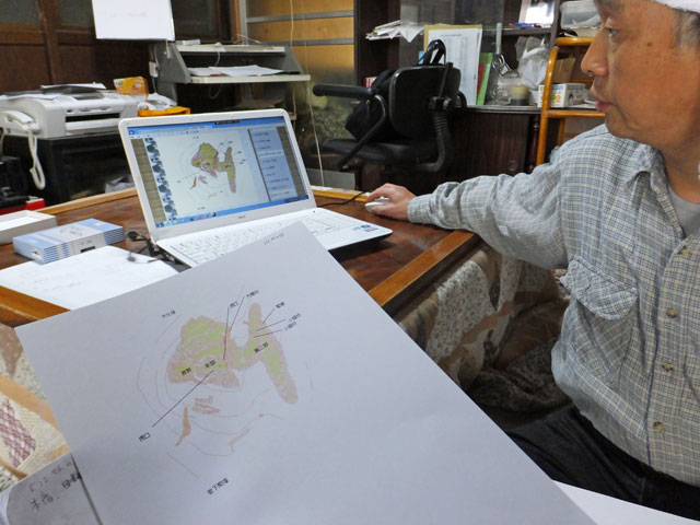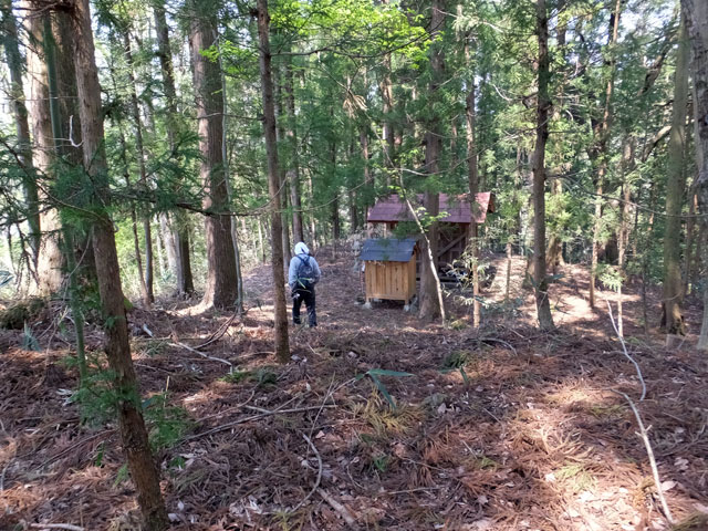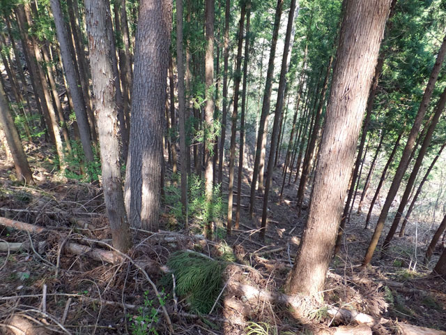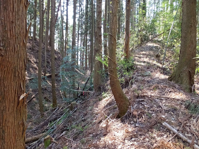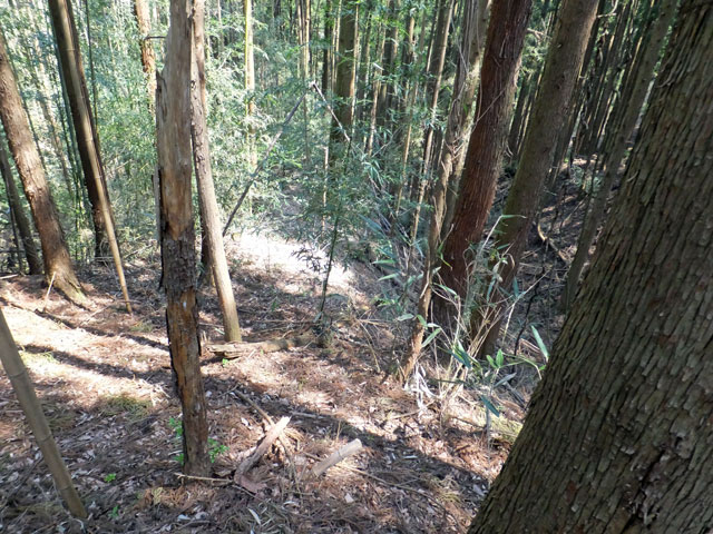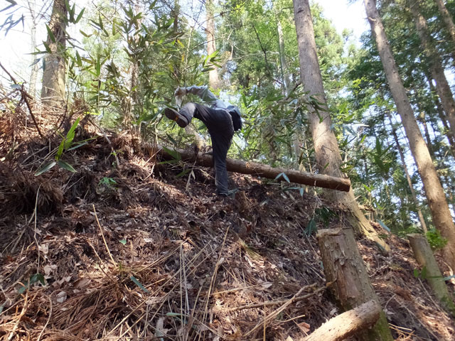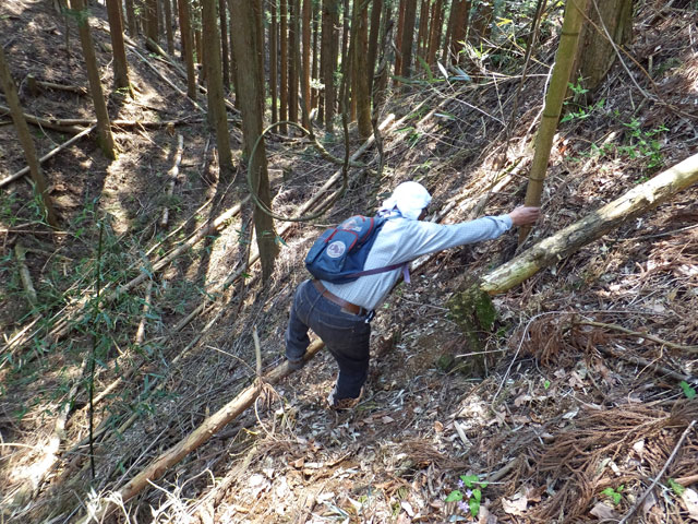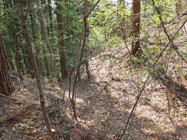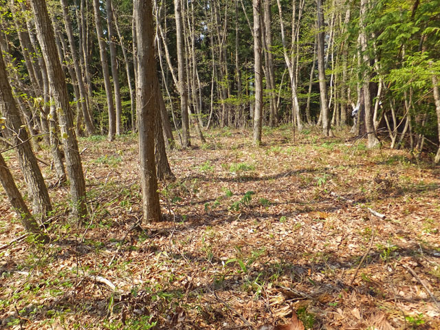 根津さんの案内で早速、岩下城址へ。コニファーいわびつの上の道をそのまま上って行きます。