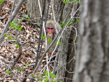 長野原城址、箱岩から天狗岩の尾根間で猿軍団と遭遇しましたが、速やかに逃げて行ってくれました。それでも、人里とあまりにも近すぎていて心配です。